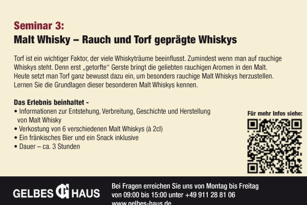 Maltwhisky - Rauch und Torf geprägte Whiskys und spannende Grundinformationen über Maltwhiskys, die Whiskyherstellung und spezielle Besonderheiten gibt es bei diesem Tasting für die Teilnehmer. Nosing- und Tasting-Grundlagen auch für Neulinge.